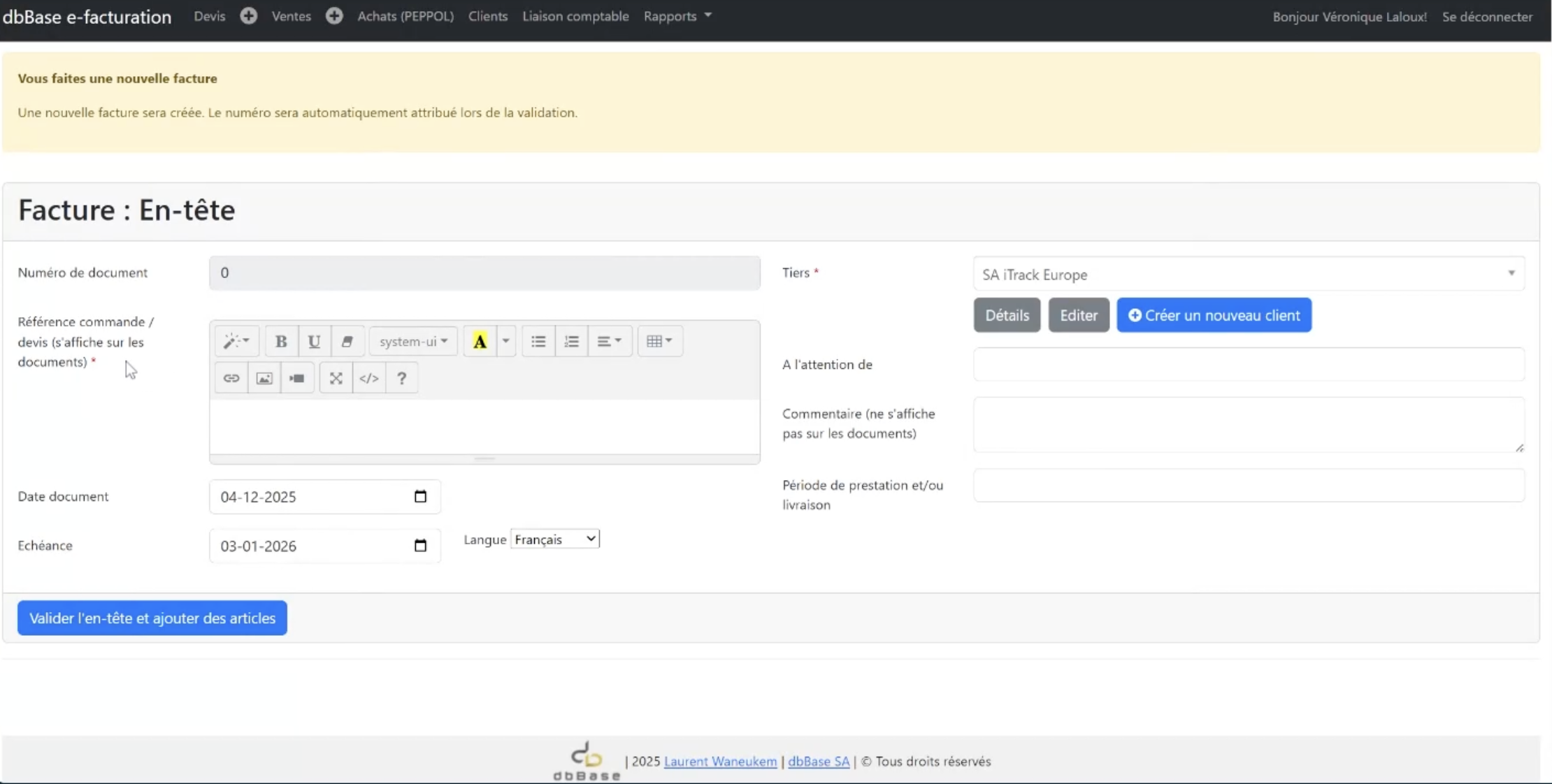 Numéros de facture automatiques et totaux corrects à chaque fois.